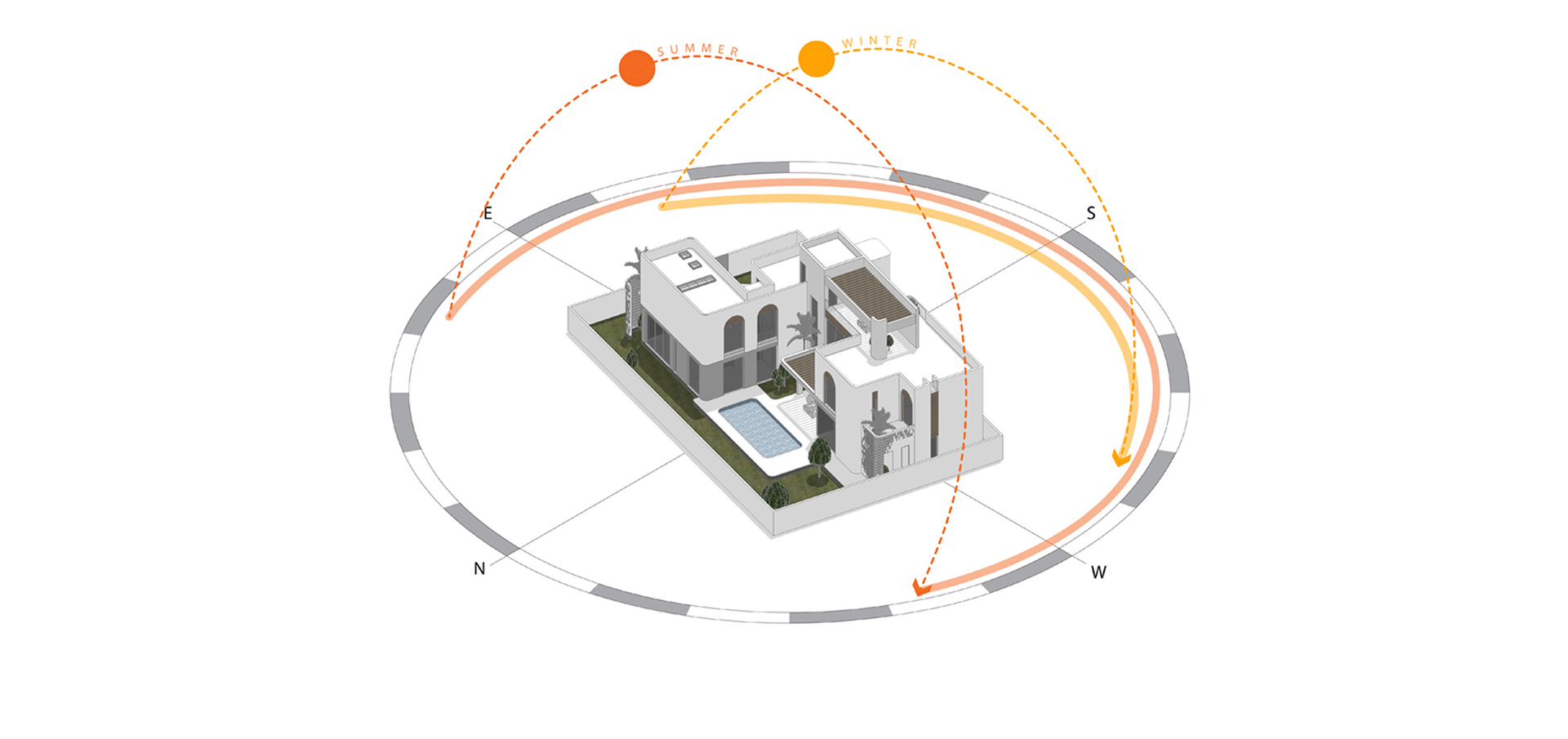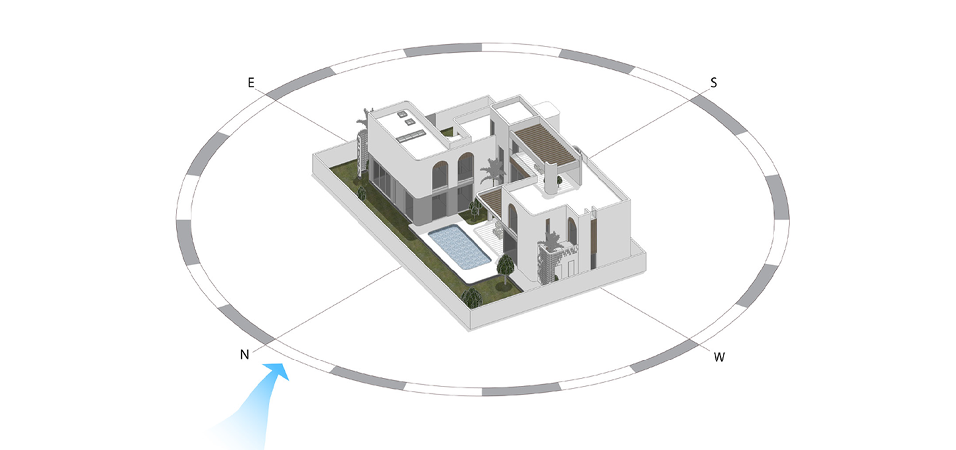 - Soft Geometry The curved volumes soften the building mass and enhance the villa’s sculptural, modern presence.